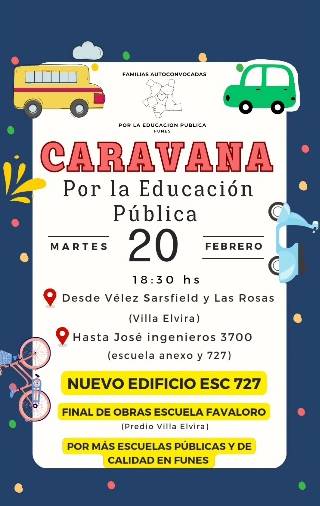 El mismo convoca a la comunidad de familias y docentes a una caravana este martes, desde las 18.30, que partirá desde Vélez Sarsfield y Las Rosas en Villa Elvira, hasta su destino final en José Ingenieros 3700, donde se encuentran (precisamente) la Escuela Anexo y la Escuela Secundaria n° 727.
