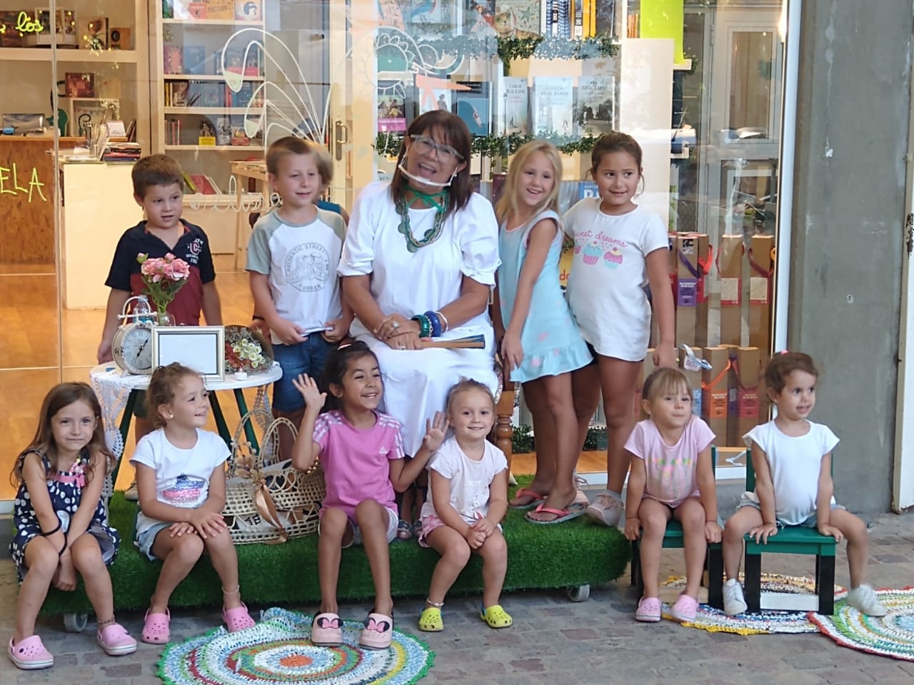 Resulta que María Eugenia, hacía poco que había instalado una librería infantil maravillosa en Funes, así que casi que fue algo que se dio solo: invitar a la abuela a que vaya a contar cuentos a la librería, para que su pericia de cuentacuentos sea apreciada por muchos niños más.