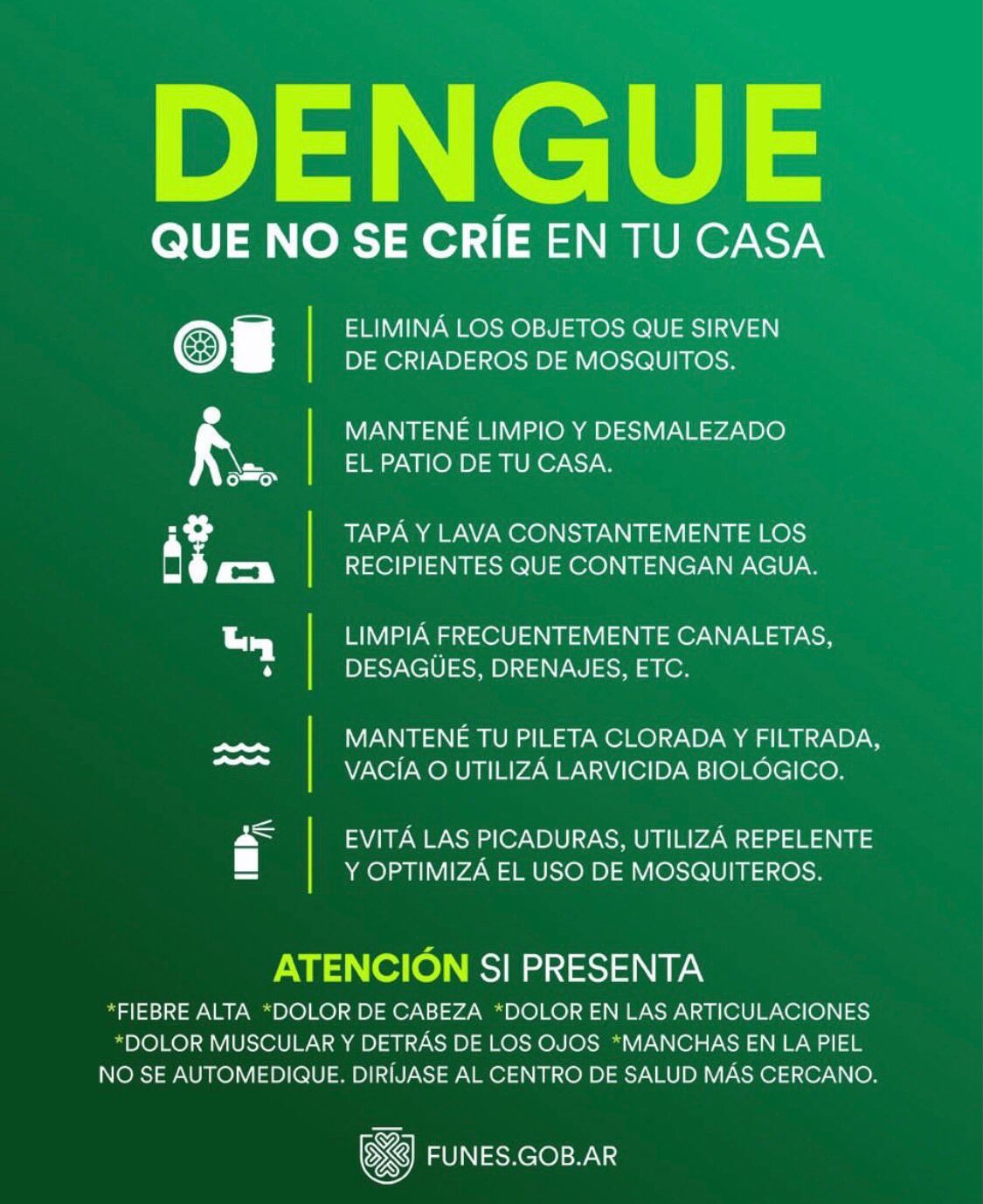 También se sugiere tener el patio limpio y desmalezado, como tapar y lavar constantemente los recipientes que contengan agua.