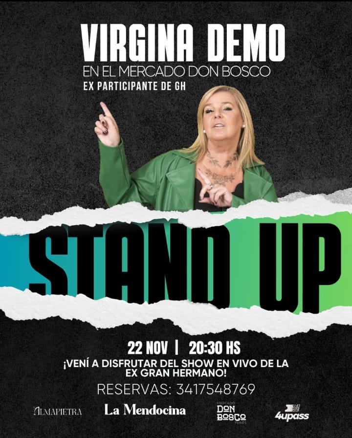 Luego de su paso por el reality “Gran Hermano”, Virginia Demo llegará a Funes con su espectáculo de stand up. La cita será el sábado 22, a las 20.30, en el Mercado Don Bosco. Las reservas se podrán realizar al 341-7548769.