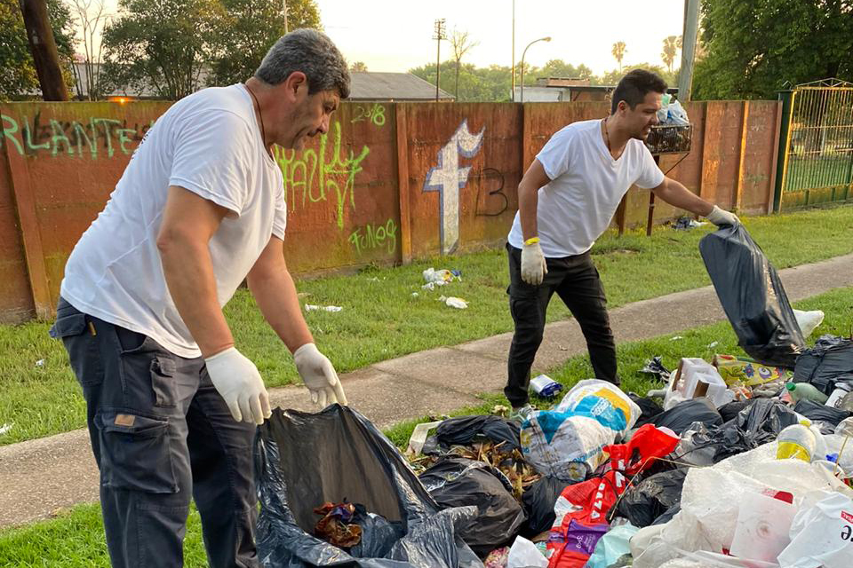El intendente de Funes salió temprano a la calle para ayudar a levantar la basura acumulada en conteiners y calle. "Es hora de levantar el paro", le pidió a los municipales.