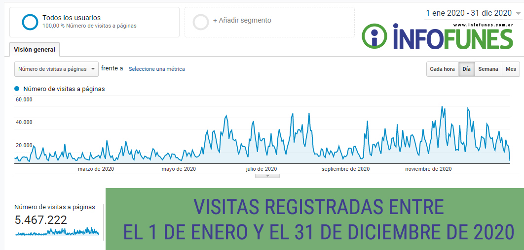 Según estadísticas de Google Analytics, InfoFunes registró desde 1 de enero de este año hasta el día de hoy, 31 de diciembre a las 10 de la mañana, 5.467.222 visitas. El número marca un crecimiento real del 353 por ciento respecto del año anterior.