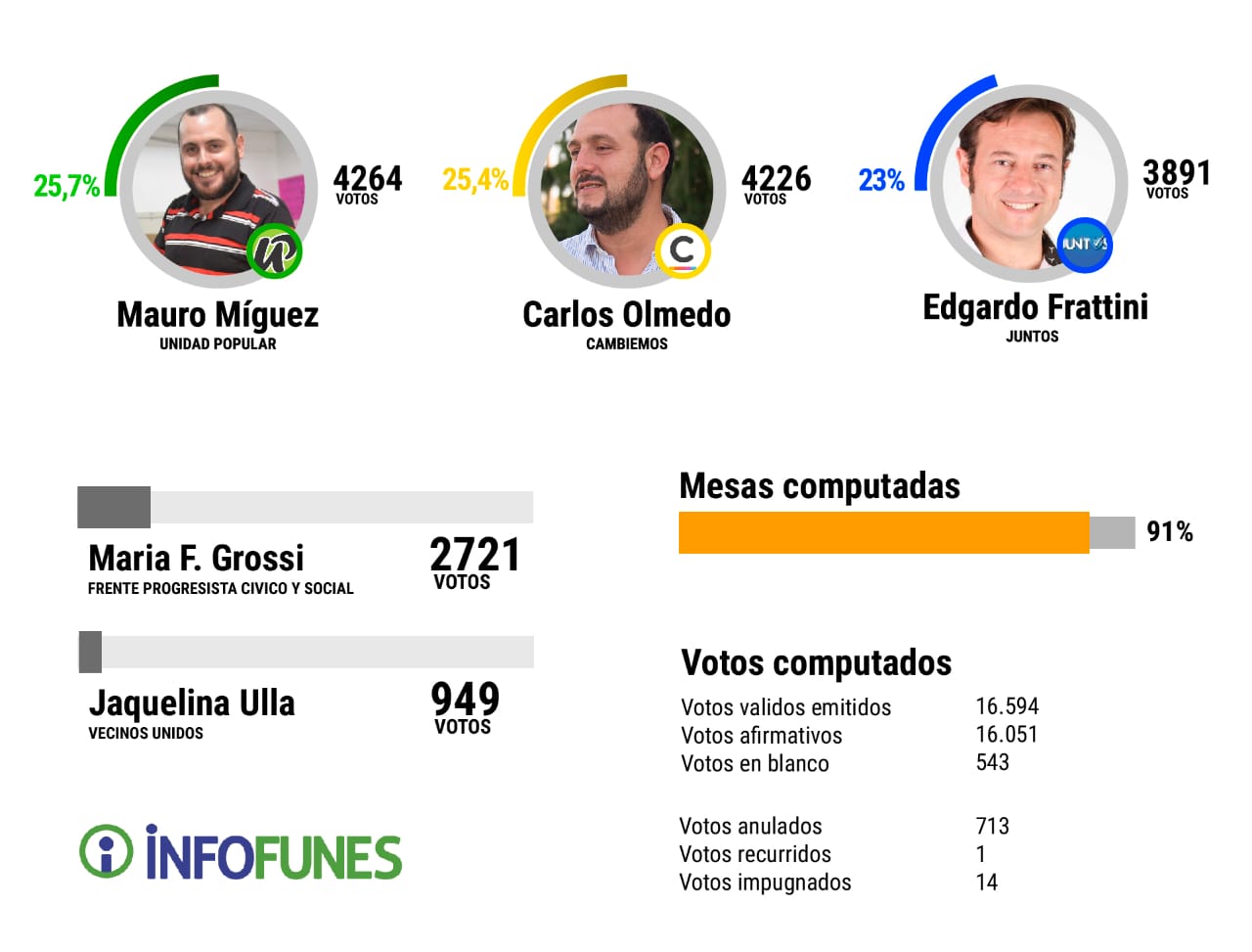 El Unidad Popular Mauro Miguez, el Cambiemos Carlos Olmedo y el PJ Edgardo Frattini se convirtieron en concejales electos.