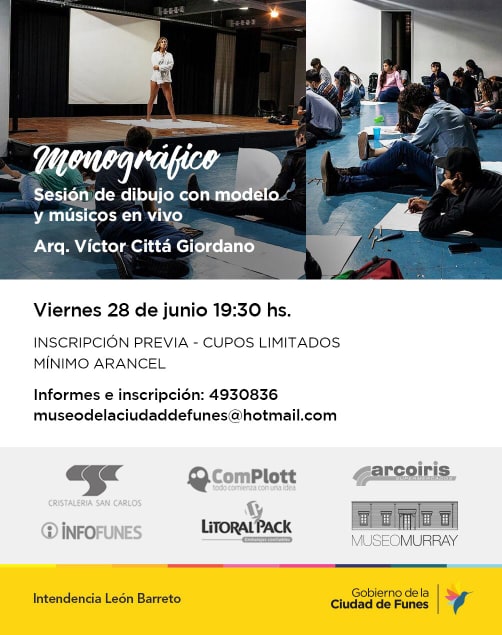 Será este viernes a las 19.30. Se trata de una nueva edición de "Monográfico", sesión de dibujo con modelo y músico en vivo, dirigida por Victor Cittá Giordano.