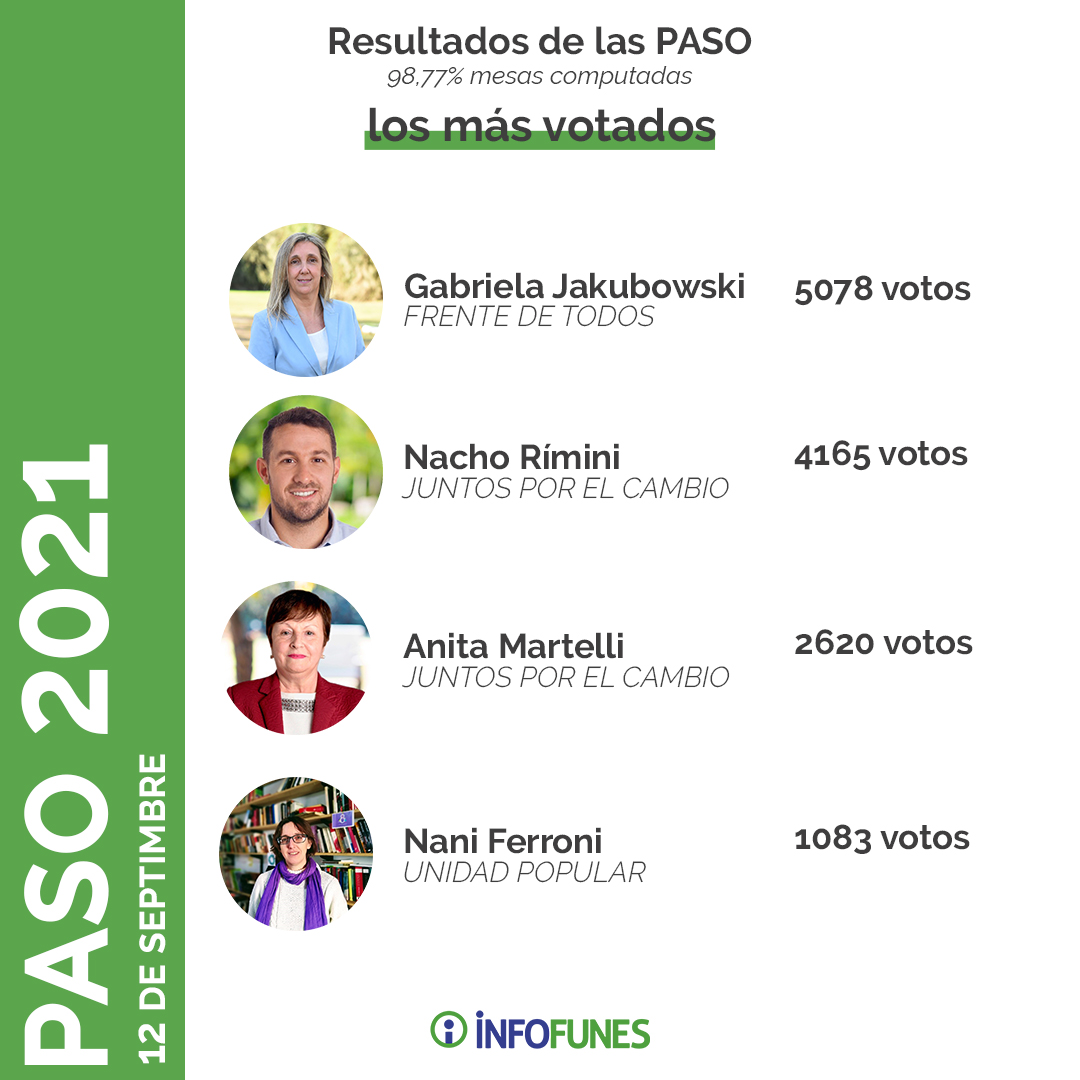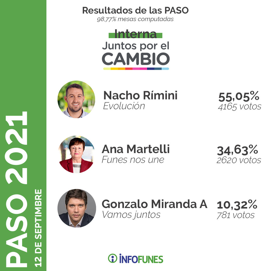 La candidata del oficialismo se impuso con 5078 votos. Ignacio Rímini, con 4165 sufragios fue el claro vencedor de la interna de Juntos por el cambio. Lorena Volozo ganó la interna progresista por 61 votos.