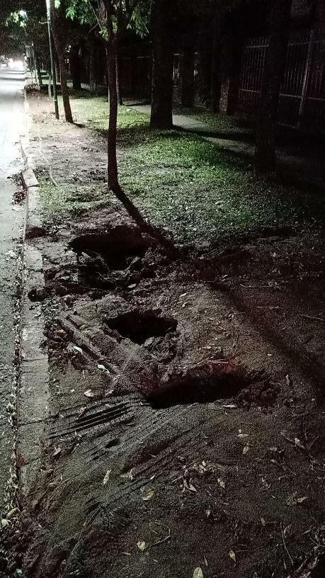 La rueda delantera del lado derecho del vehículo quedó incrustada en un pozo que se produjo por la obras de cloacas, el dueño del auto contó que se fue enterrando cada vez más mientras intentaba sacarlo de allí. Por otra lado afirmó que es "Un peligro más si alguien pasa caminando porque no está cercado".