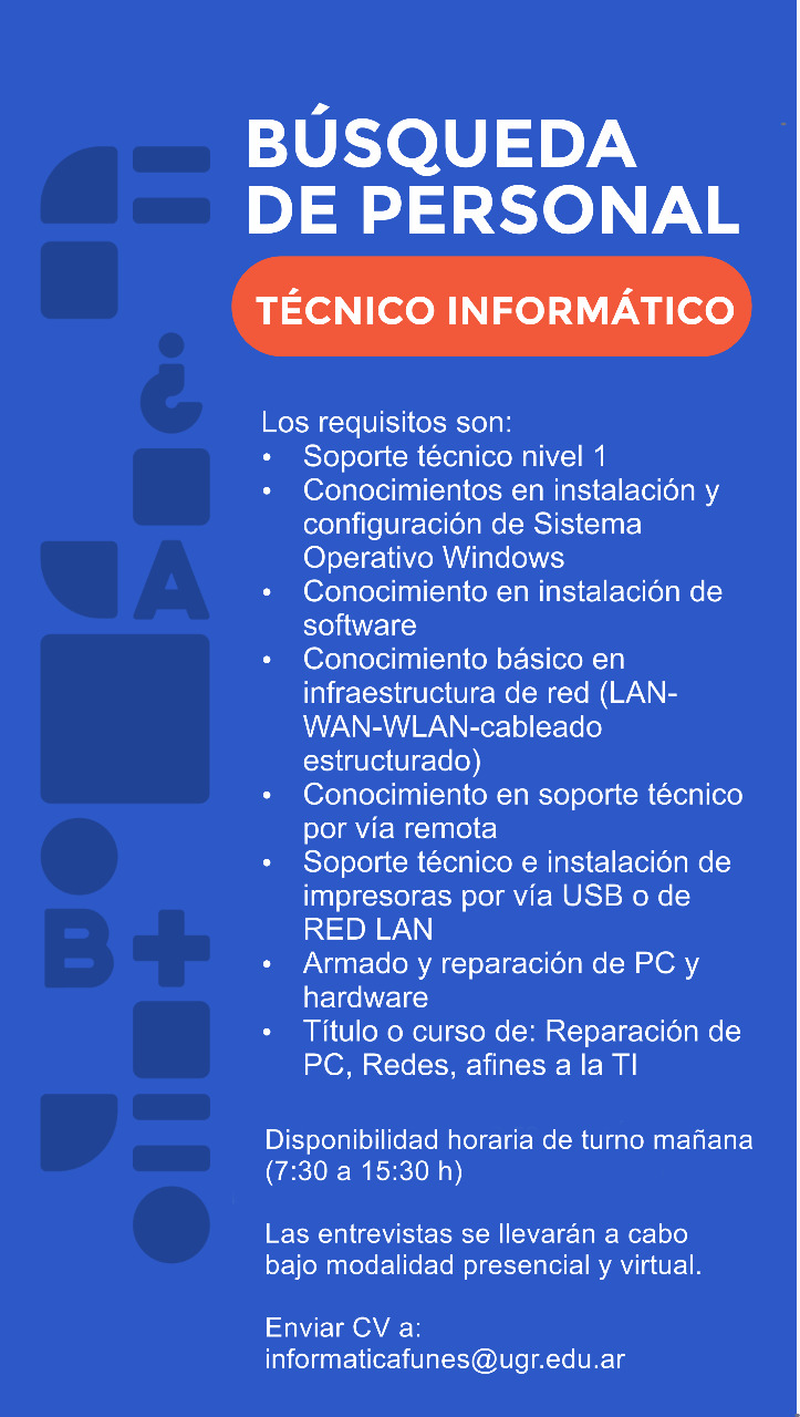 La institución educativa se halla a la búsqueda de personal técnico. Los requisitos, en la nota.