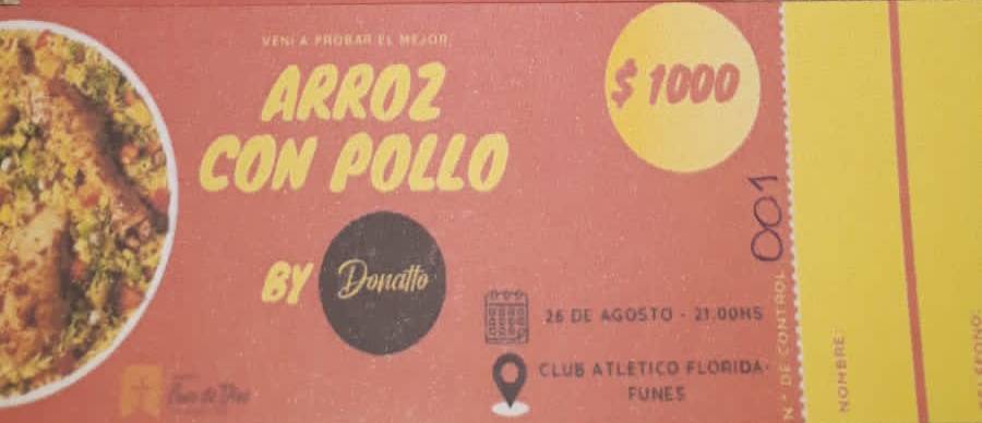 Será el sábado 26 en el Club Florida y habrá arroz con pollo. Las tarjetas están a la venta en la Iglesia Casa de Dios Puerta del Cielo, de Bouchard al 1500.