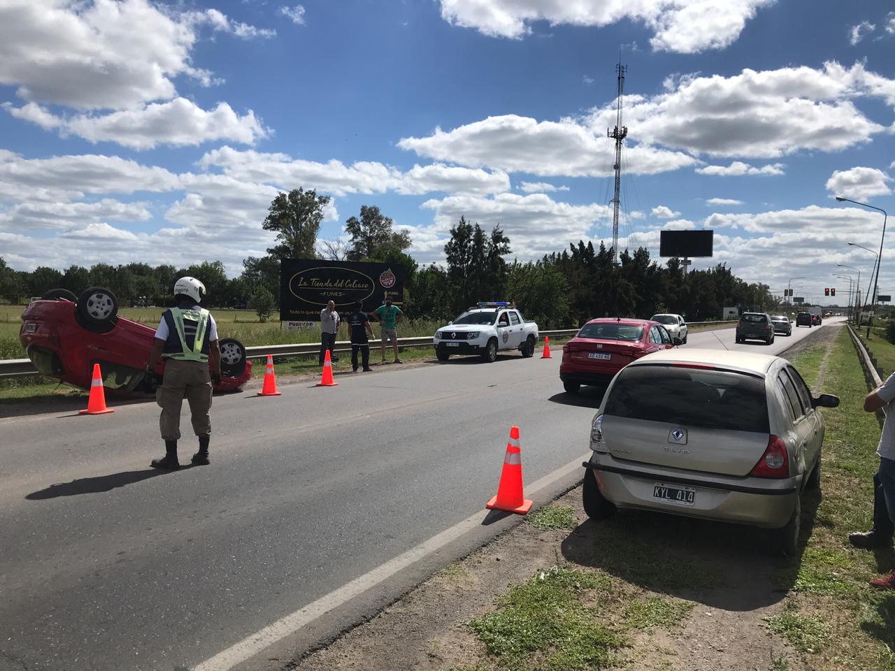 Volcó un auto luego de un accidente sobre la Ruta 9. Es la segunda vez en dos semanas que se produce un choque en la zona. El día de Navidad falleció un joven de 26 años.