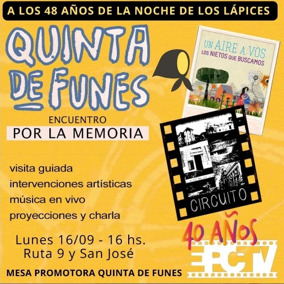 Este lunes se conmemorará un nuevo y triste aniversario (48 años) de “La Noche de los Lápices”, y dicho capítulo de la historia será recordada en La Quinta de Funes, de 16 a 20, en Ruta 9 y San José.