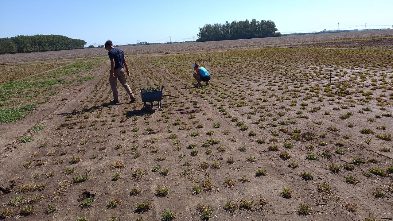 Vivero del Césped, el nombre que lleva el negocio, está instalado en un campo a pocos kilómetros de Funes, en Luis Palacios. Allí producen dos variedades: el Grama brasilero (Axonopus Compresus) y el Bermuda hibrida Tifway.