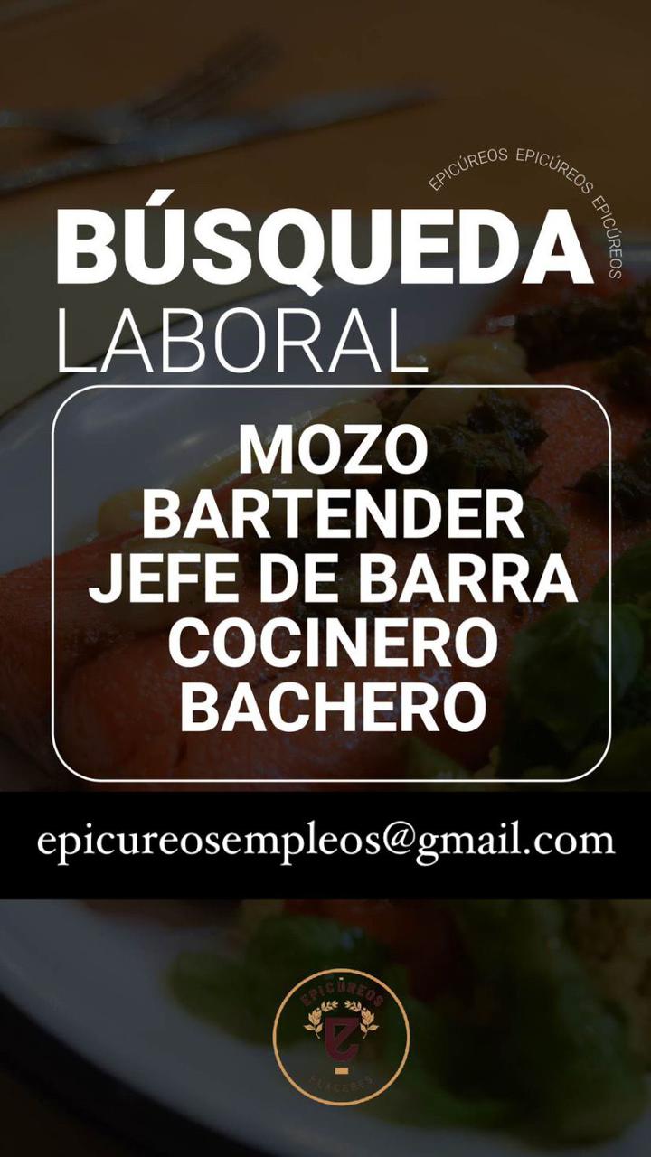 Se trata de Epicúreos, que busca mozo, bartender, jefe de barra, cocinero y hasta bachero. Contacto en la nota.