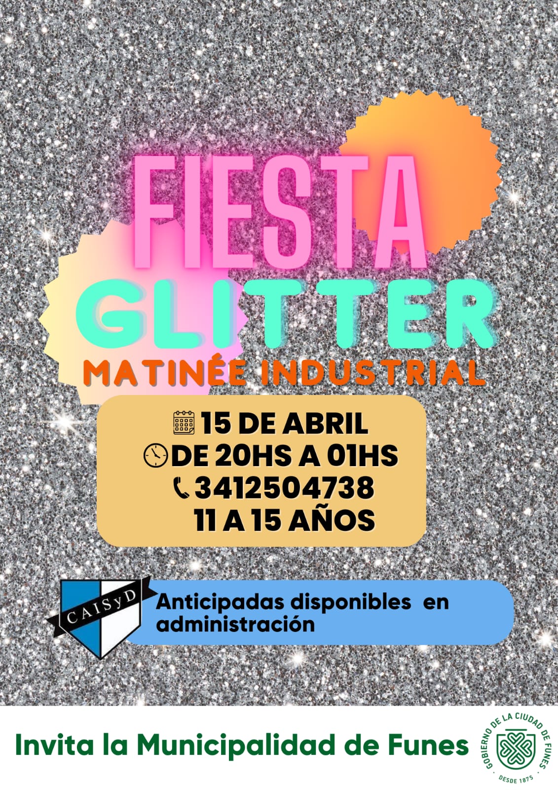 Para esta ocasión, la sede será el Industrial, que organiza su evento bajo la temática de “Fiesta Glitter”, para adolescentes de entre 11 y 15 años. Las entradas tienen un costo de $1500 (incluye consumición), y los interesados deberán acercarse a la administración del club, ubicada en calle Cochet 1955.