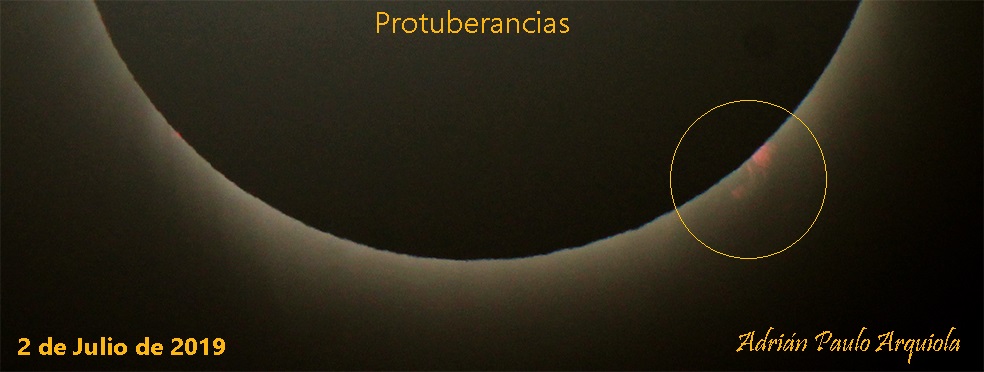 Al momento del eclipse total del sol, también se pudo observar lo que se conoce como protuberancias solares. ¿Qué son? Son las explosiones solares que se pueden observar en el eclipse, este es un fenómeno habitual pero muy difícil de observar.