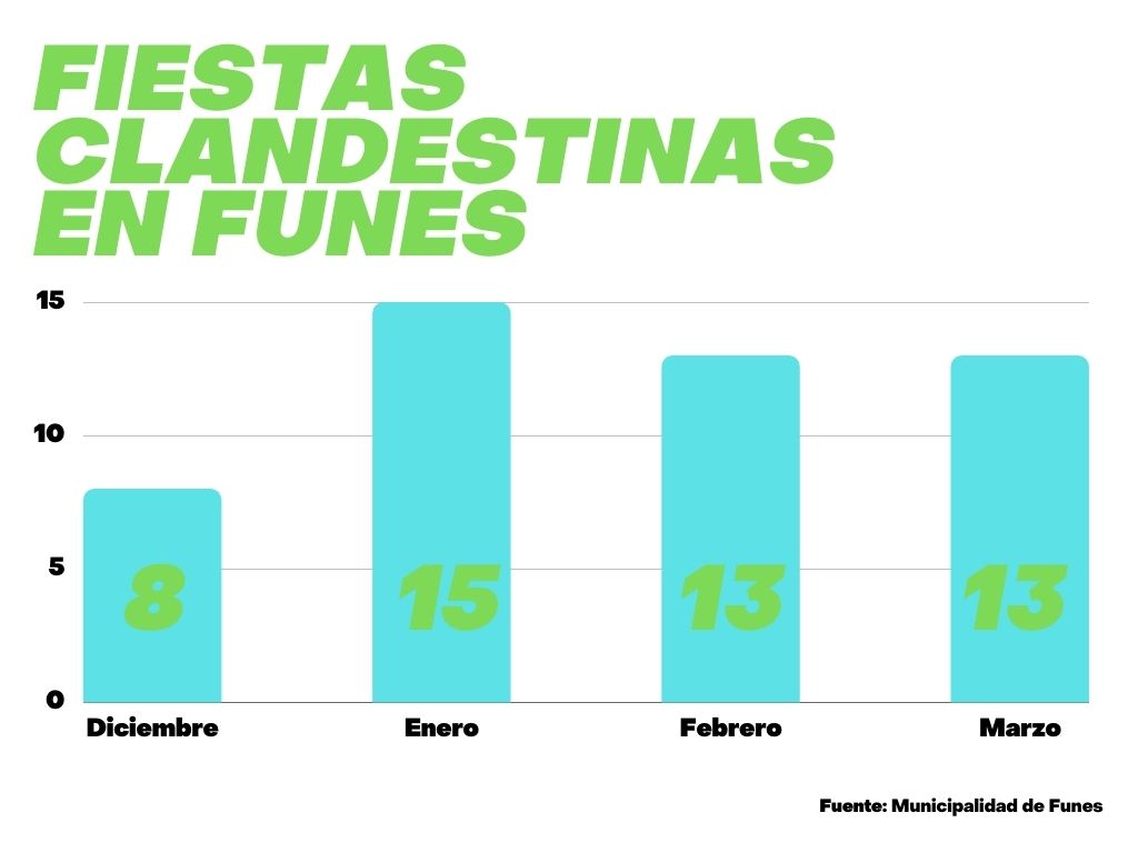 Durante la temporada de verano se detectaron 95 fiestas clandestinas en Funes. La cifra se desprende de un informe oficial confeccionado por el municipio y al que InfoFunes tuvo acceso.