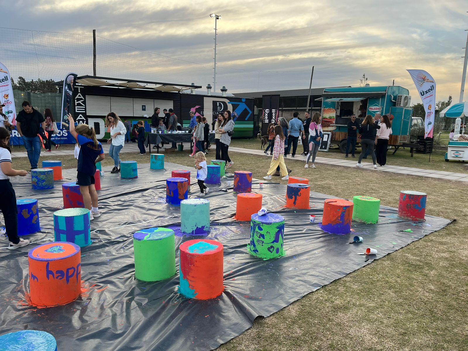Este viernes, se realizó una jornada de intervención artística bajo el nombre “Dejá tu huella en Damfield”, donde cientos de chicos pertenecientes a las distintas actividades que ofrece la institución funense dijeron presente en el predio para pasar una tarde rodeada de juegos, música y desviación.