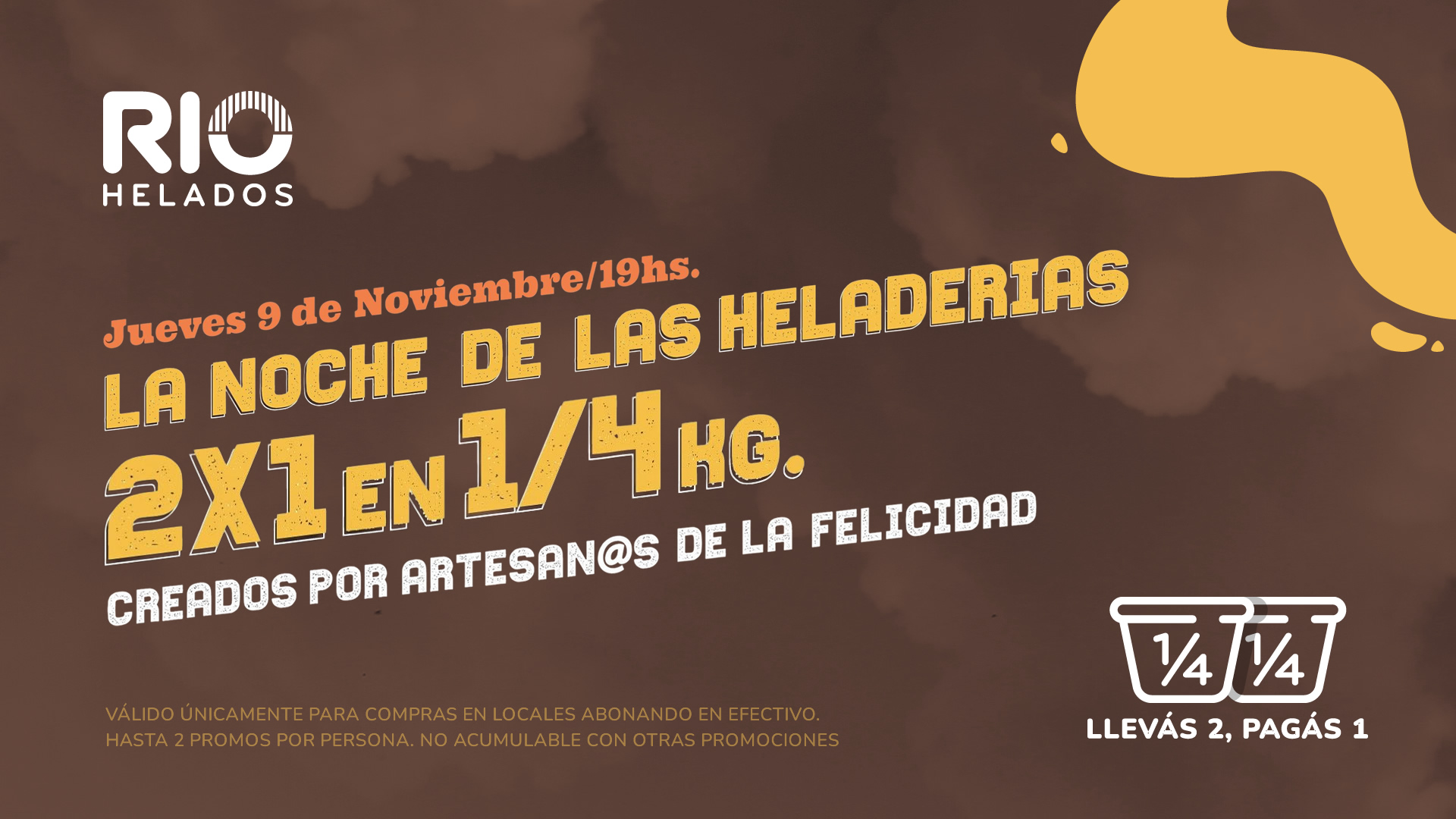 El evento tendrá lugar este jueves, a partir de las 19 horas. Habrá 2x1 llevando un cuarto de helado en las 10 sucursales de RIO en Funes, Rosario y Fisherton.