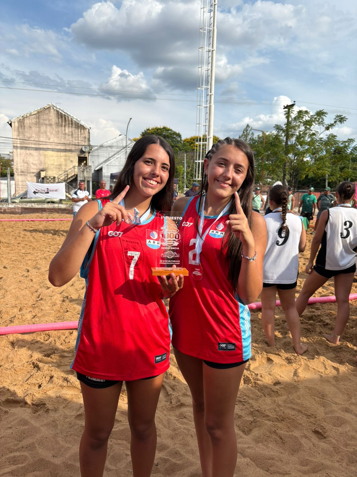 Lola Fernández y Morena Lagos son de Funes, tienen 15 años, cursan 4º y 3er año, respectivamente, en los colegios Arino y María Auxiliadora y son las representantes funenses del campeonato del Beach handball que se disputó hace una semana en Resistencia (Chaco), más conocido como “Arena 1000” y donde el seleccionado rosarino, desde el Club del Gran Rosario, se quedó con el primer puesto.