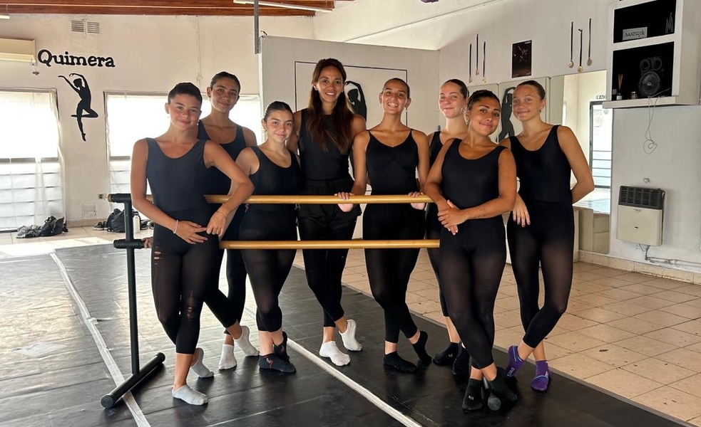 Pero la de abril no es la primera experiencia del Quimera en el exterior, llevan varios años participando de eventos fuera del país gracias a las becas que se ganan sus alumnas. En el caso de María Paz Azurmendi, quien a los 14 años (hoy tiene 17 recién cumplidos) ganó una para estudiar en Milano (Italia), estuvo hace poco en California (EEUU) bajo la misma modalidad, pero compitiendo como solista. También ganó otra beca en 2023 para participar de un certamen de danza en Perú, al igual que la rosarina Giuliana DeGiusti, ambas también en modalidad solista. Además de Azurmendi y De Giusti, a Estados Unidos viajan también Emma Slingo, Zoe Ferreyra Montironi, Gianela Ognibene, Victoria Hereñu, Julia Suárez y Valentina Zelaya.