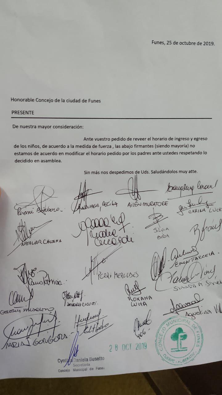 Incluso a través de una nota firmada por varias de las “seños” señalaron que no iban a cambiar el horario.