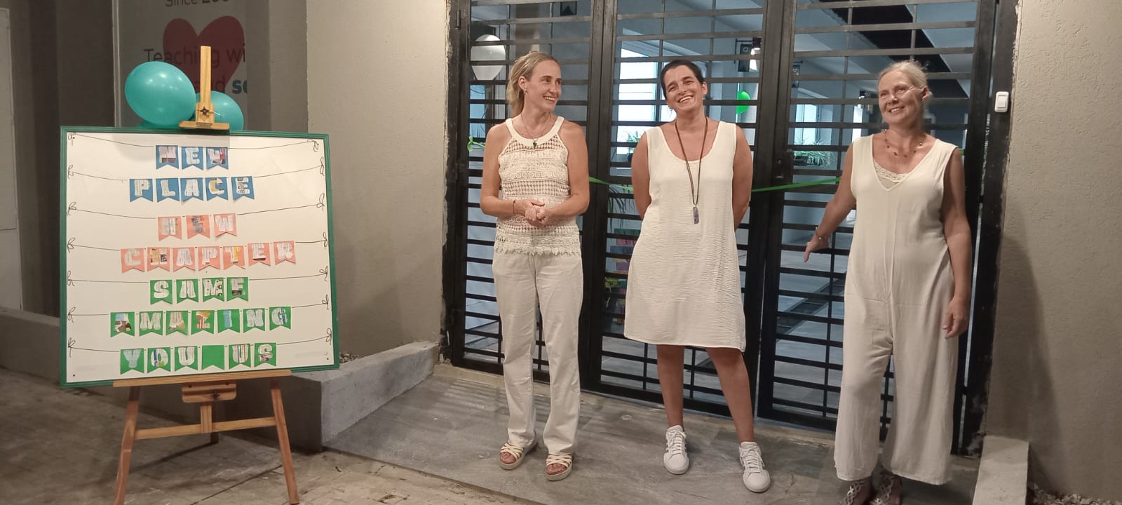 El viernes, en compañía de familiares, docentes y amigos, las hermanas Carla y Carolina Frutero y Alejandra Papaleo hicieron el tradicional corte de cinta (en realidad se desató un moño verde esperanza) para dar apertura oficial al nuevo espacio, en Santa Fe 1280 (3417410234).