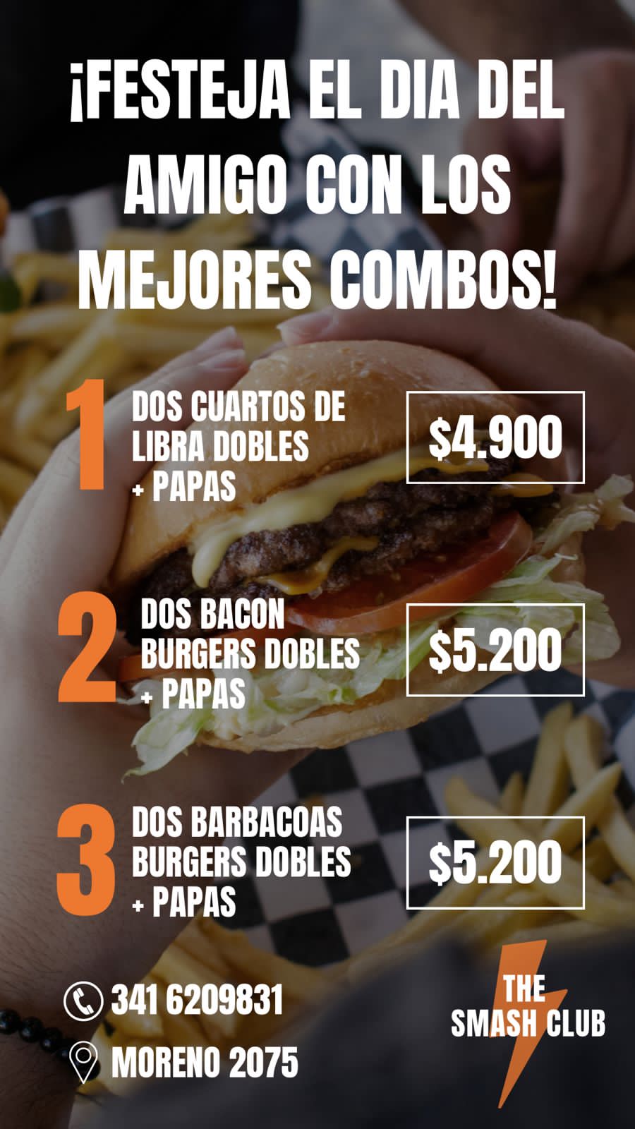 El local de comida rápida The Smash Club se prepara para acompañar los festejos del Día del Amigo con todo. Por eso para este jueves 20 lanzaron tres promos dístintas para que los grupos de amigos funenses celebren cenando hamburguesas.