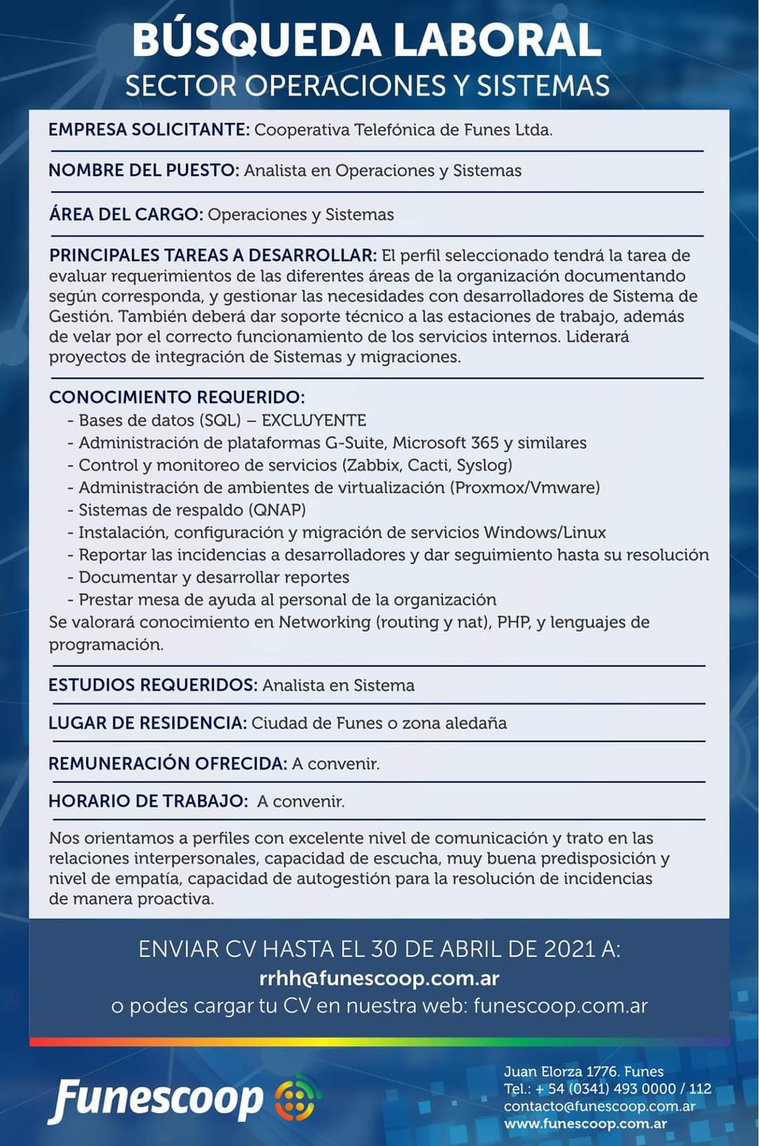 La cooperativa local lanzó una búsqueda labora para el sector de operaciones y sistemas. En la nota, los requisitos y cómo hacer para postularse.