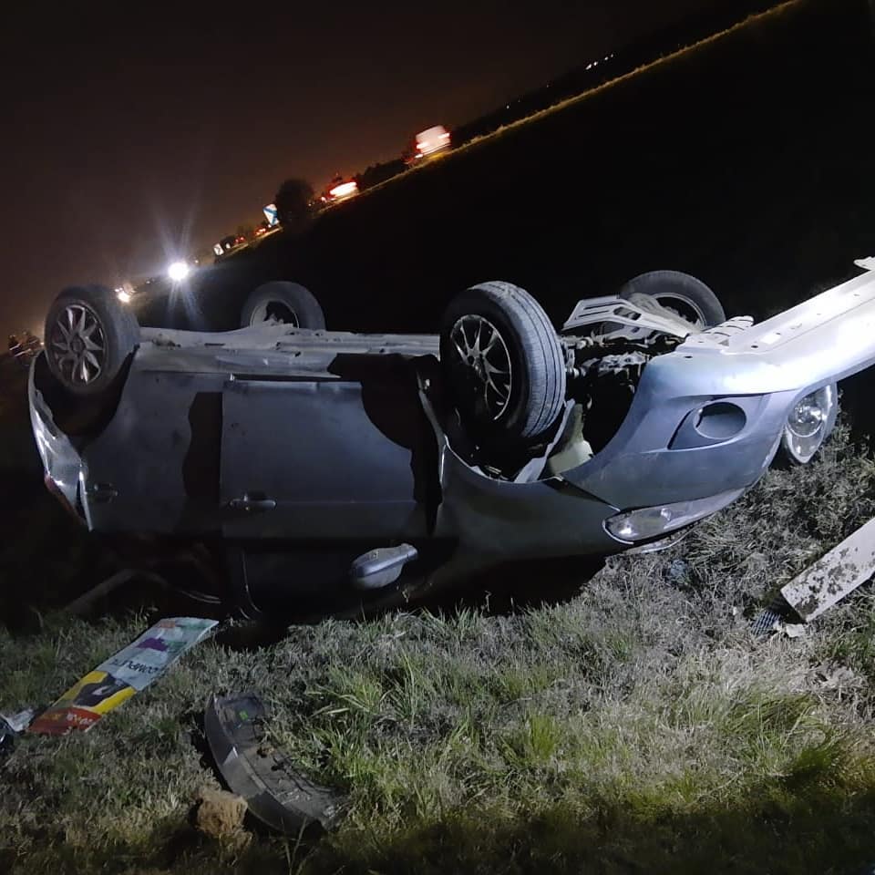 Tremendo accidente en la autopista: una mujer despistó y terminó ruedas al cielo