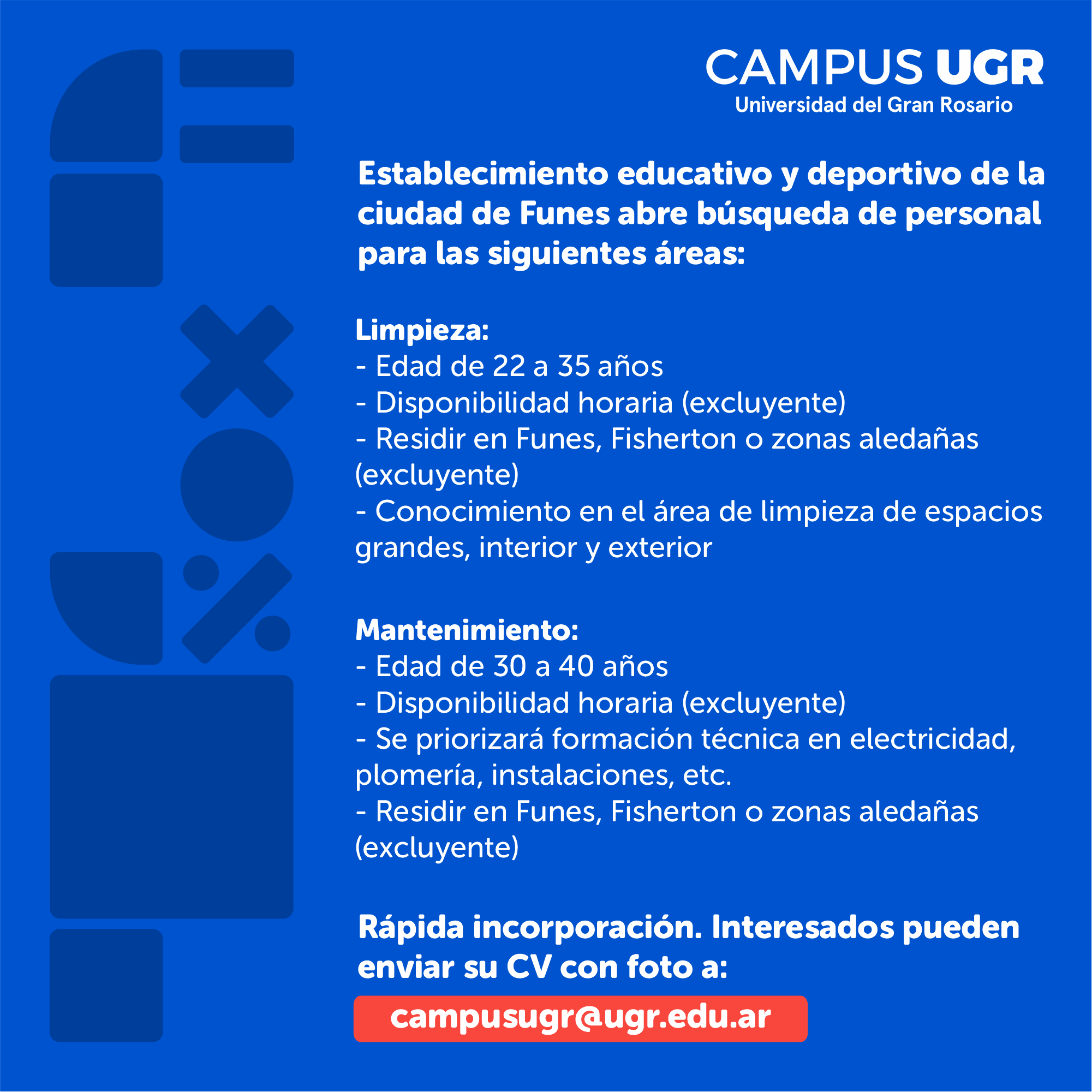 La búsqueda está dirigida a personas que puedan cubrir cargos de limpieza y mantenimiento. En la nota, los requisitos de cada convocatoria.