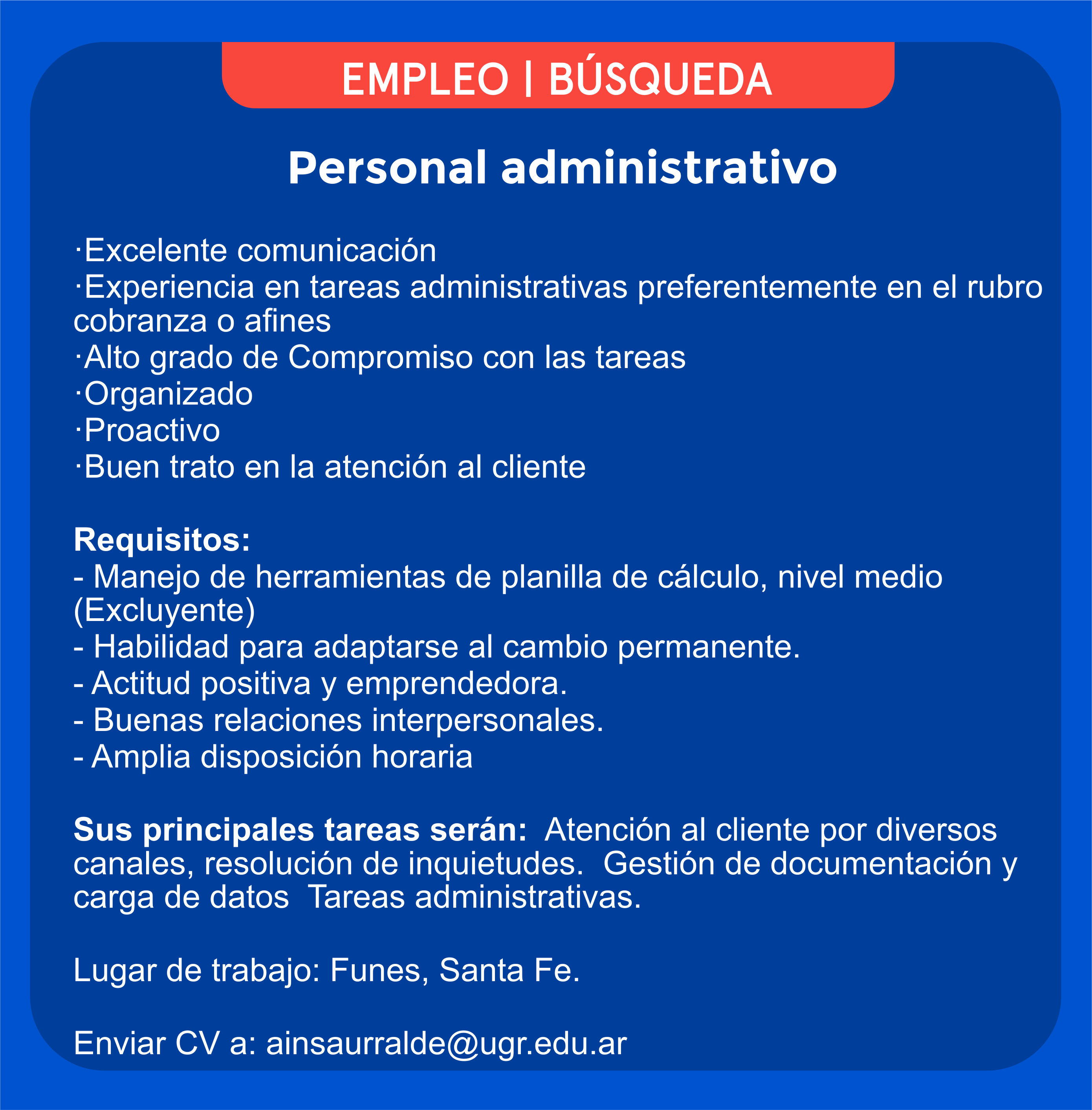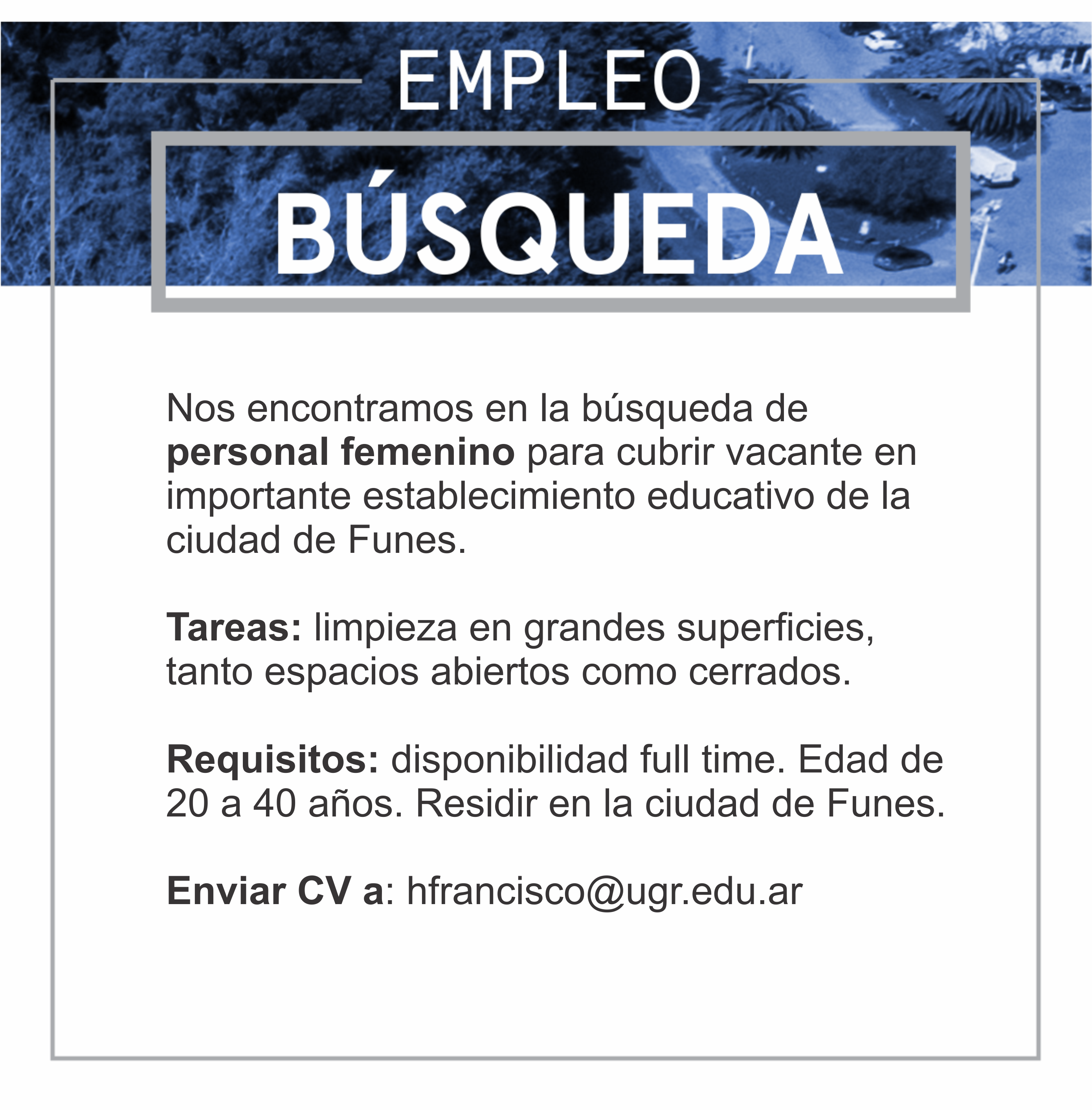 La Universidad del Gran Rosario abrió tres búsquedas laborales diferentes en diciembre: personal administrativo, de limpieza y de portería. Los requisitos y data necesaria en la nota.
