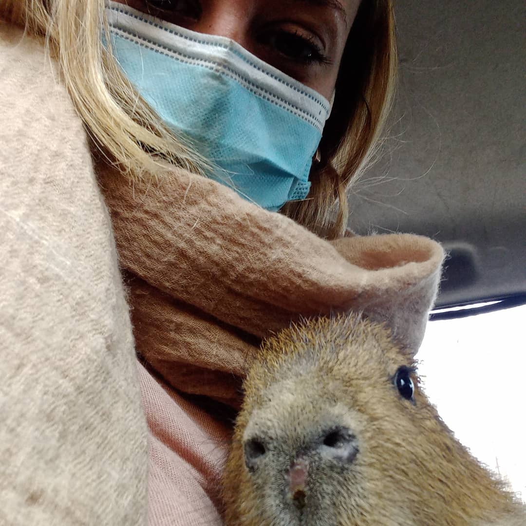 Salud Animal recibió un llamado anónimo de una persona que había visto el rescate del carpincho adulto la semana pasada, y se enteró que estaba prohibido tener como mascotas a estos animales a partir de esa difusión, y fue así que los contactó para contarles que ella sabía de una persona que tenia una carpincha bebé.