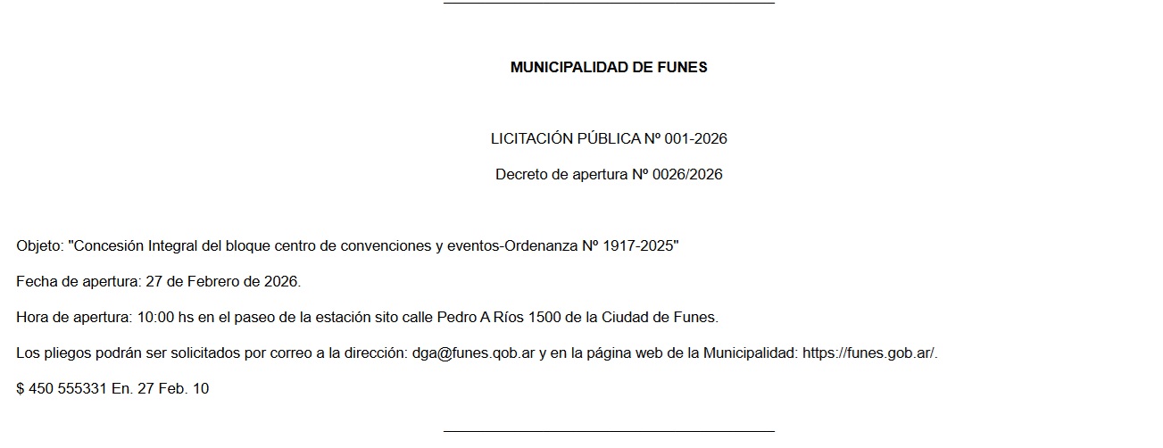 En un movimiento que redefine el mapa de inversiones de la ciudad, Funes se prepara para sumar dos nuevos centros de convenciones, uno de estos con capacidad para 10 mil asistentes, posicionando a la ciudad como un verdadero polo de eventos a nivel regional. La licitación para estos desarrollos fue lanzada hace pocos días por la Municipalidad y la apertura de sobres está prevista para el próximo 27 de febrero.