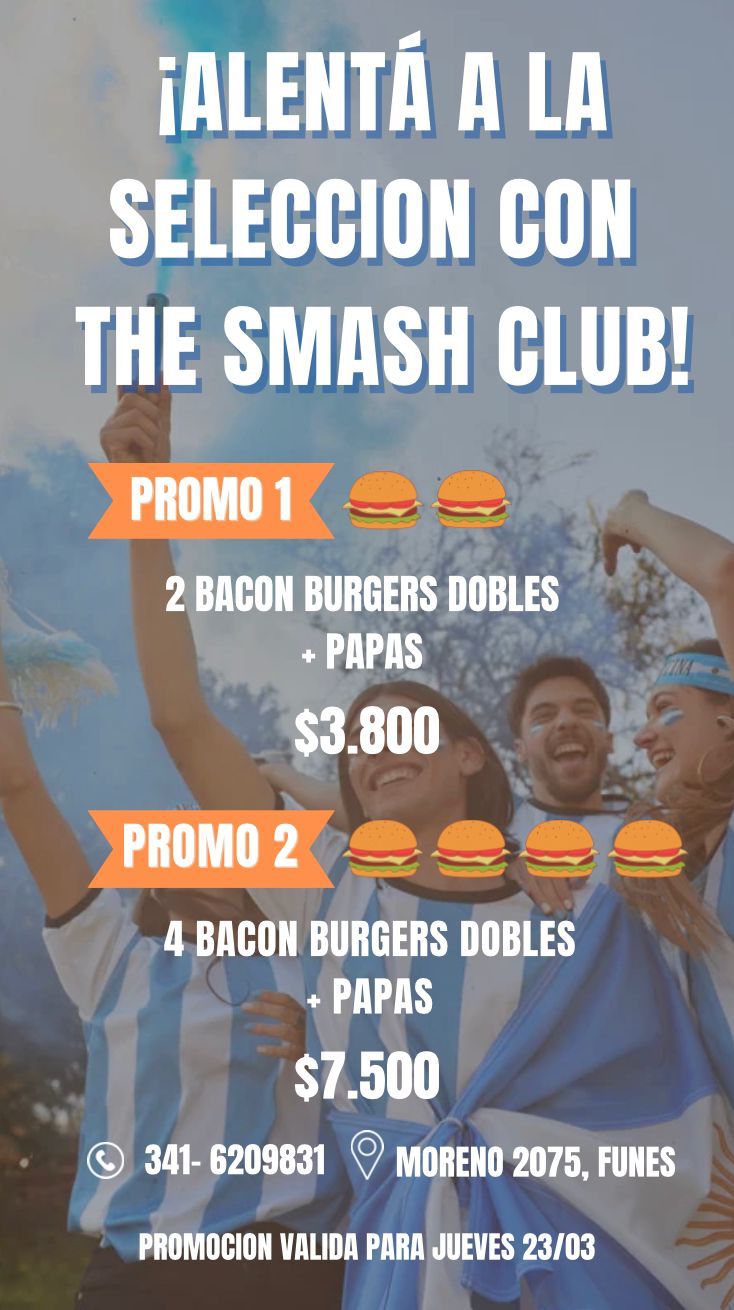 La hamburgueseria The Smash Club busca seducir a los grupos de amigos que este jueves se junten a ver el partido de la Selección Argentina de fútbol.