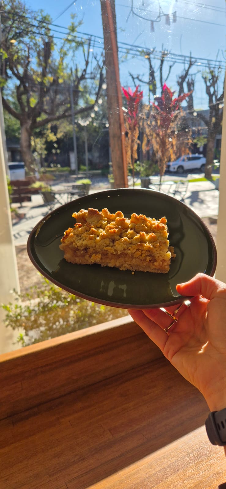 En Ficus todo es a pulmón. Él está en la cocina; ella atiende al público mientras aprende castellano. En este primer tramo, la propuesta incluye café de especialidad –trabajan con la tostadora rosarina Ruffo y también con Puerto Blest de Buenos Aires– y una carta reducida pero cuidada. Hay cookies estilo neoyorquino, croissants rellenos, danesas, tostadas y una torta de manzana, por supuesto con receta tradicional alemana.
