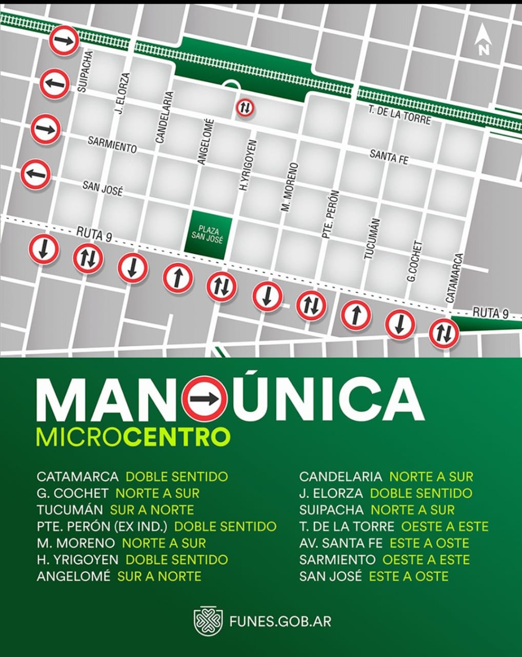 En menos de una semana el tránsito de la zona centro de la ciudad cambiará. Con el mes de junio llega la mano única a Funes. Un gran cambio al que los funenses deberán acostumbrarse.