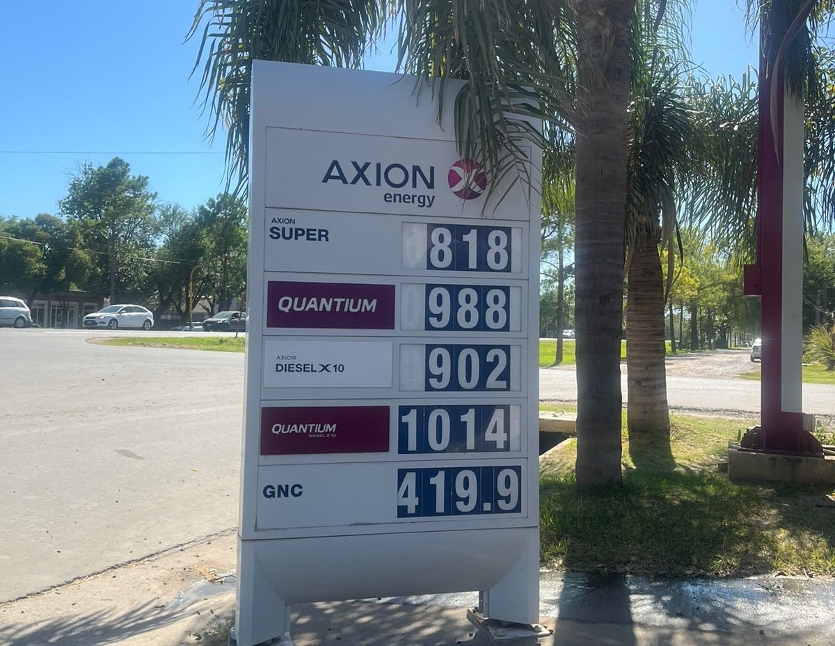 Por último, Axion fue la excepción y no realizó aumentos en sus precios: la petrolera ubicada en Ruta 9 y Mitre vende la nafta Súper a $818, Quantium $988, Diesel X10 $902, Quantium Diesel X10 $1014 y GNC $419,9.